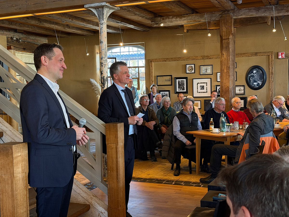 In der anschließenden Diskussion stand Thorsten Frei Rede und Antwort zu den drängenden Fragen unserer Zeit. Dabei ging es unter anderem um das Infrastrukturzukunftsgesetz, mit dem die bauliche Modernisierung Deutschlands beschleunigt werden soll, sowie um die Energiewende. Weitere Themen waren innere Sicherheit, die Migrationswende und Steuerpolitik.